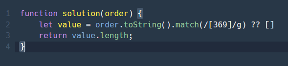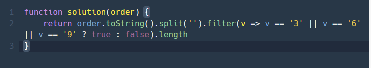 return order.toString().split('').filter(v => v == '3' || v == '6' || v == '9' ? true : false).length