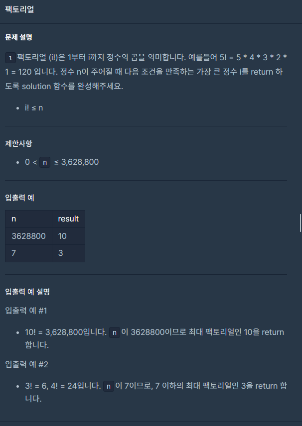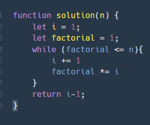 3. factorial이 n보다 작거나 같은 동안 i를 1씩 증가 시키고 factorial에 i를 곱한값을 factorial에 저장을 반복합니다.