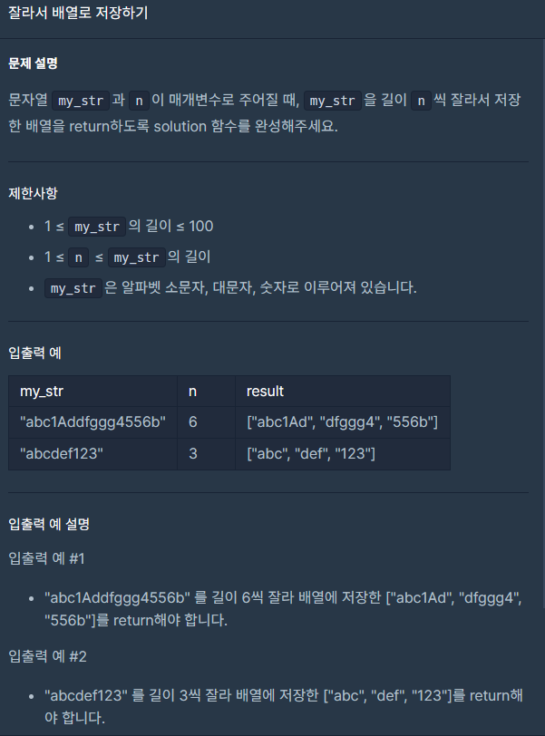 2. for 반복문을 사용하여 인덱스 i를 0부터 my_str.length까지 n씩 증가시키면서 반복합니다.