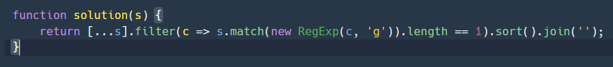 return [...s].filter(c => s.match(new RegExp(c, 'g')).length == 1).sort().join('');
