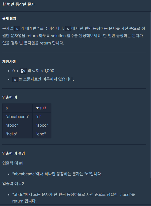 한 번만 등장한 문자