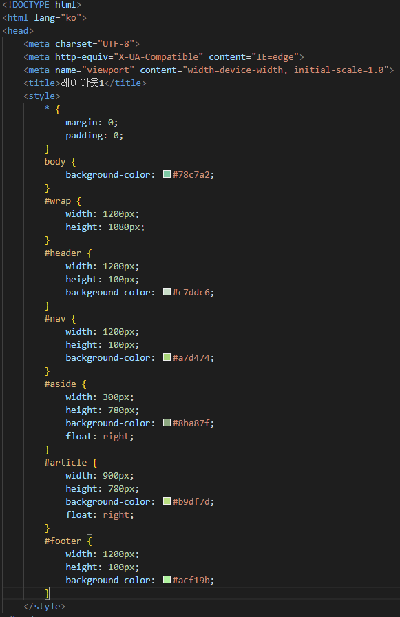 이후 모든 블록레벨요소를 자식으로 두고 있던 부모블록요소 <div id="wrap">에 margin: 0 auto; 를 넣어주면 모든 블록 레벨요소들이 중앙으로 가게되어 레이아웃 하나가 완성 됩니다.