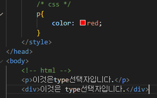 html문서의 태그 이름을 선택자로 사용할 수 있습니다.