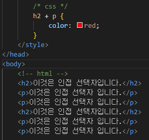 ※현재 요소의 바로 뒤에 나오는 요소만을 가리키는 선택자입니다.
