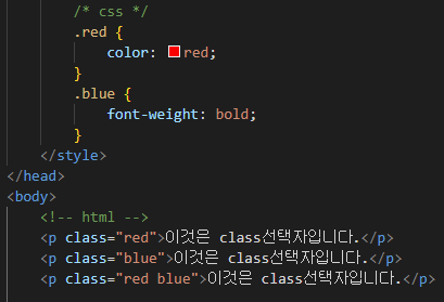 ※여러 개의 요소에 같은 class명을 부여할수 있고, 하나의 요소에 여러 개의 class명을 부여할 수도 있습니다.
