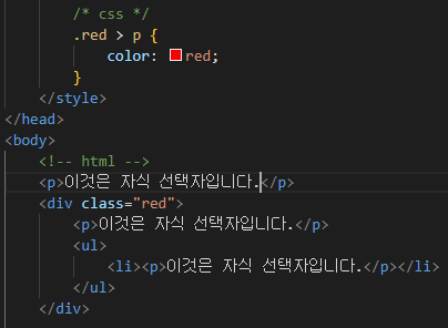 ※css에서는선택자 사이를 >로 분리 합니다.