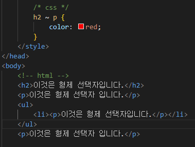 ※css에서는 선택자 사이를 '~'로 분리 합니다.