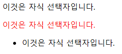 ※요소 내부에 있는 해당 요소를 가리키지만 하위요소의 하위요소는 가리키지 않습니다.