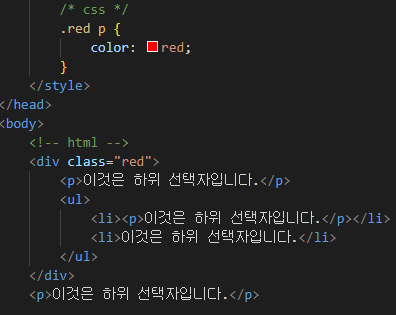 ※css에서는 선택자 사이를 공백으로 분리 합니다.