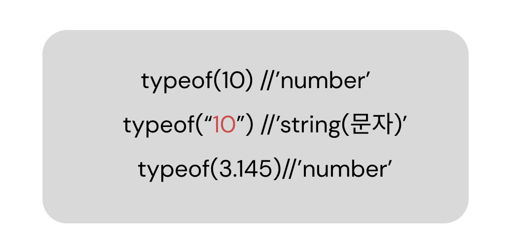보통 C언어나 자바 같은 프로그래밍 언어는 정수와 실수를 구별하여 다른 자료형으로 사용 하지만 자바스크립트에서는 정수와 실수를 함께 묶어서 '숫자형'이라 합니다.