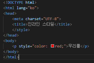 인라인 스타일은 태그에 직접 CSS를 정의해주는 기법으로, 해당 요소에 style="" 형식으로 기술 합니다.